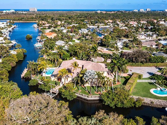 This magnificent custom home offers waterfront privacy in a small, gated community of only five homes in the unincorporated enclave of Little Cypress Pointe situated between Jupiter and Palm Beach Gardens. The home was built in 2000 by the current owners and is less than 5 minutes from the Beaches, the Juno pier, Jupiter Hospital, the Gardens Mall and all the best restaurants and shops in the Palm Beach Gardens, Juno Beach and Jupiter area. The home is on .87 acres and features approximately 255 feet of water frontage on two sides with a boat dock and a separate 25,000 pound boat lift on Little Cypress Creek. The property also includes a separate, potentially buildable parcel of .11 acres with 162 feet of waterfront