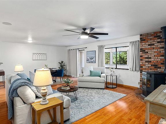 JUST REDUCED! Stunning property offers an abundance of features and upgrades that are sure to impress. Situated on two parcels, this home boasts an extra-large lot, providing you with nearly half an acre of space to enjoy. Fully fenced yard with room for 2 RVs & more. This turnkey 2 bedroom, 2 bathroom home features a newer roof and OWNED solar with BONUS ROOM! Laminate flooring throughout and the newer pellet stove is perfect for staying cozy in the winter. Entertainment enthusiasts will appreciate the prewired surround sound system in the living room. This home also features a transfer switch prewired for a generator. Beautiful vaulted bonus room off living room and deck with skylights and ceiling fan for light and bright relaxing. The kitchen is a chef's delight with its ample counter space and a generous pantry for all your storage needs. The master bedroom featuring two spacious closets and extra space that can be utilized as an office or work-from-home area. The master bathroom is adorned with beautiful tile flooring and a convenient shower. The guest bedroom is enhanced by a unique sliding barn door shutter for the window, adding a touch of style and functionality. The guest bathroom has been updated with a modern shower and new flooring. The two-car garage provides ample parking and storage space. Step out onto the back deck and take in the peaceful surroundings of your fully fenced oasis. The newer fencing ensures privacy, while the large gate provides easy access and plenty of room for parking your boat, RV or toys. Additional storage can be found under the home and in the shed, keeping your belongings organized. But that's not all! The backyard is a gardener's paradise, featuring an abundance of fruit and nut trees including pear, apple, peach, fig, apricot, almond, cherry, strawberries and grapes. Imagine harvesting your own fresh produce and enjoying the flavors of nature right outside your door. This home offers a blend of comfort, functionality, and outdoor bliss. For those seeking energy-efficient solutions, the added insulation in the attic helps maintain a comfortable temperature year-round, while the newer hybrid hot water heater ensures an ample supply of hot water while reducing energy consumption. The whole house fan keeps the interior cool and comfortable during the warmer months, while the newer induction stove and extra quiet Bosch dishwasher. Come check this beautiful 2 parcel home, you wouldn't be disappointed.