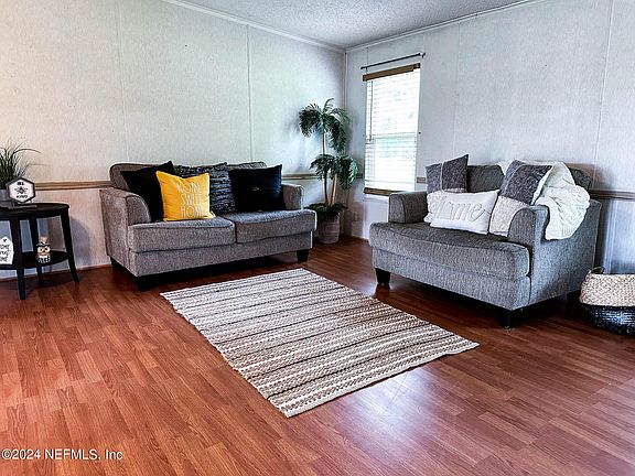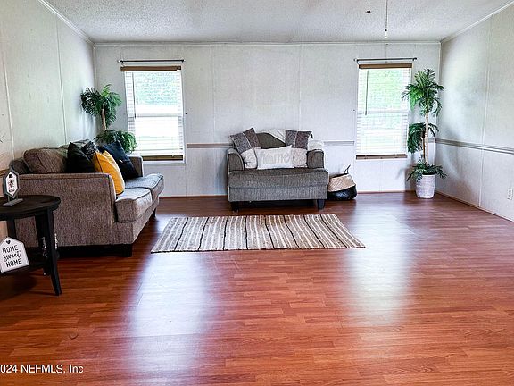 Come see this centrally located, 1864 sq ft triple wide mobile home nestled between Starke and Lake Butler. Situated on a 1-acre lot along State Road 100, this residence offers tranquility and convenience. Boasting 3 bedrooms and 2 baths, the interior features a split floor plan, spacious kitchen with abundant cabinets and a center island. The open concept living and dining area enhances the sense of space and connectivity. The covered front deck invites you to relax, entertain guests, and cherish moments together. Exterior storage shed 16 x 17 is equipped with electric. Easy commute to Gainesville, Jacksonville and surrounding areas.