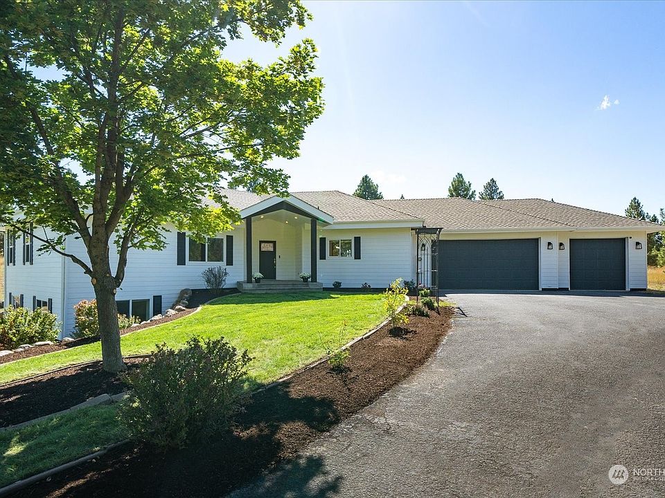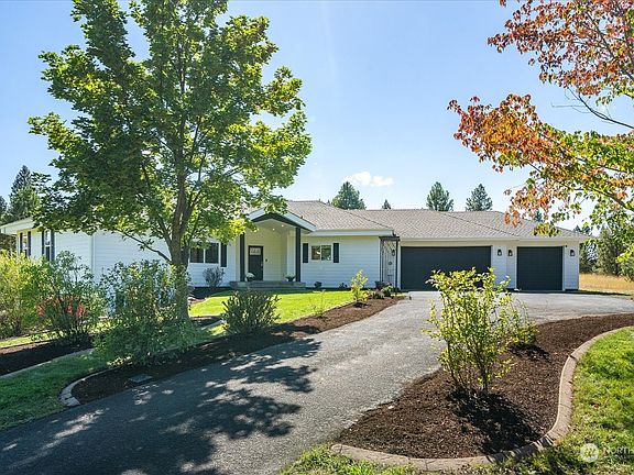 Fully remodeled daylight rancher w/4 beds, 3 baths, & 3-car garage on nearly 5 acres. Updates include new flooring, fresh paint in & out, modern lighting, & new SS appliances. The main floor offers an open layout with panoramic views, cathedral ceilings, boasting 2 beds & 2 baths. The main floor master suite has an attached bath w/dble vanity, soaking tub, walk-in closet, & private deck. The daylight walk-out basement features an add’l 2 beds, 1 bath, & spacious family rm. Step out onto your back deck to enjoy the scenic backdrop, ideal for entertaining. Add’l highlights: main floor living, RV parking, amazing landscaping, sprklr system, newer roof. Conveniently located w/in 15 min of Spokane Valley/South Hill, w/ easy access to HWY 27.