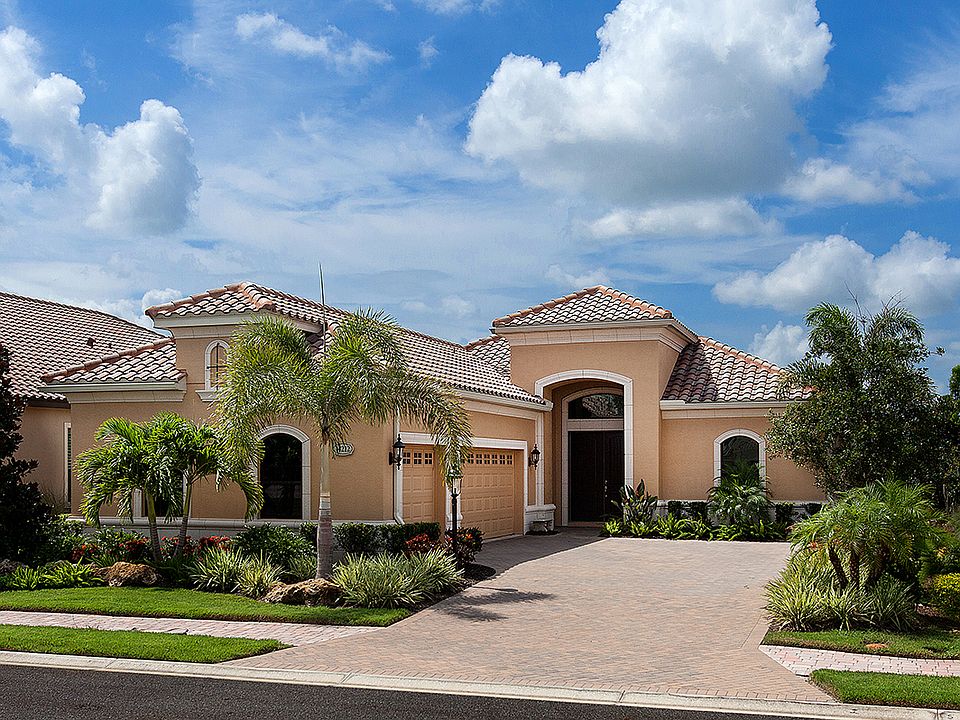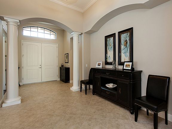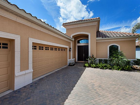 Welcome to this hardly lived custom built second home situated in the gated golfing community in Country Club East. This maintenance free home is situated on a sheltered cul-de-sac lot offering tranquil lake views, privacy and serenity This Entrare open floor plan features 3 spacious bedrooms and den. The large great room features tile flooring, triple sliding glass doors to the lanai and flows to the kitchen. Breathtaking gourmet kitchen with custom cabinetry, upgraded stainless steel appliances, granite counter tops, one level island, beautiful tile backslash, gas burner cooktop, stainless steel exhaust hood and separate casual dinette. The formal dining room is close proximity to the kitchen and the great room accommodating all your entertaining needs. Impressive master suite with sitting area, two walk-in closets and private bathroom with walk-in shower, double vanities and tile flooring. Relax in the extended screened lanai with desirable southern exposure and plumbed for a future outdoor kitchen. Other features include: 12' high volume ceilings, crown moldings, tray ceilings, extensive landscaping, three car side load garage with ample storage areas, pull-down staircase and paver driveway, hurricane shutters, laundry room with washer, dryer, laundry tub and upper and lower cabinetry. Carrier 14-seer A/C system, irrigation system, gutters, extensive landscaping and more. Community amenities include three community pools & spas, clubhouse, fitness center, indoor/outdoor fireplace and outside grill.