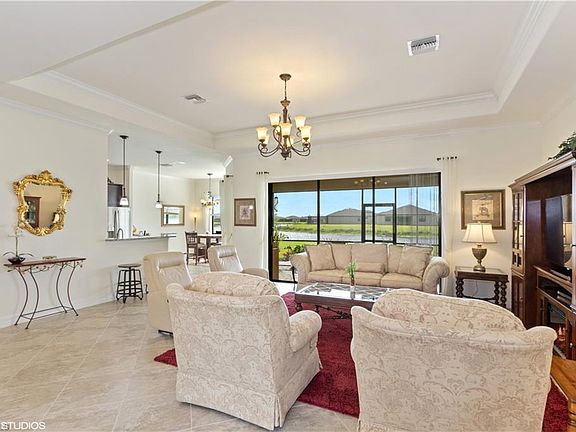 This STUNNING, Nearly New "OAKMONT" ESTATE HOME Epitomizes FINE FLORIDA LIVING! Enjoy Spectacular SOUTH FACING, BIG LAKE VIEWS & 3 CAR GARAGE! This Home Has It All. Lush Landscaping Leads To a Beautiful Entrance with an Impact Resistant Front Door. The Impressive 2361' LA offers 3 Bedroom + Den/Optional 4th Bedroom, 2.5 Bathrooms, Diagonal Tile in Main Living Areas, 5 1/4" Baseboards, 8' Doors, & Granite Counter Tops Throughout. The Kitchen, with Attached Breakfast Nook, Opens to a Large Screened Lanai with Electric Rolldown Storm Protection & Expanded Patio. For the Chef, the Kitchen Offers Top of the Line Stainless Appliances & Finishes. Oversized Laundry Room with Extra Cabinets & Sink. All This + Wrap-Around Gutters, Custom Epoxied Garage Floor, Garage Door Insulation, & UV Lights in AC System. This Generously Sized Lot has Ample Room for a Pool, Spa, Outdoor Kitchen + More. Lennar's Luxury Features of the Ei Plus Pkg. includes Alexa w/Smart Doorbell + More. NEW AMENITY COMING SOON: Pool, Fitness Center, Pickleball, Tennis, Basketball, Grills, Pavillion, Playground + More! Located Minutes from I75, Downtown River District, Shopping, Dining. THIS HOME IS TRULY A MUST SEE!