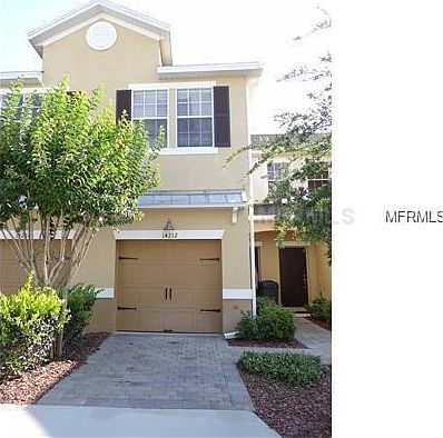 In a gated community, a great 2 bedrooms 2.5 bath plus the loft area, Spacious kitchen with Tahoe maple 42 inch kitchen cabinets, granite counters, breakfast bar. The main floor has a ceiling fan in the living room, single car garage, half bath for guests, sliding glass patio doors out to a covered patio with storage closet and large open air deck. The master bedroom has a ceiling fan, walk in closet, private bath with double sinks in a solid surface vanity over maple cabinets and large glass enclosed shower. The second bedroom is almost as large as the master and there is the full hall bath between that bedroom and the large open loft area. Washer and dryer and custom blinds are included. The townhome has a prime location across the street from the community club house, fully equipped Gym, huge pool with beach area & playground. Easy commute for Park employees. Great Windermere area location with A + schools and shopping.