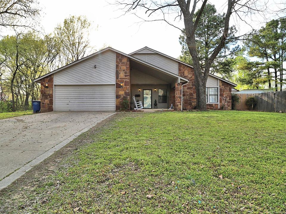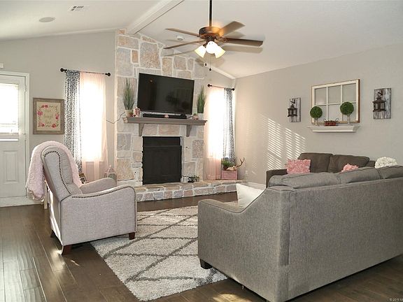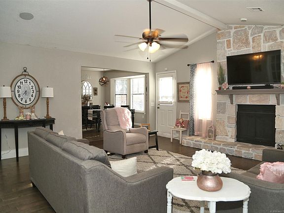Updated with warm farmhouse style! Beautiful hardwood floors throughout. Vaulted ceiling in den w/ stone fireplace. Granite in spacious kitchen w/bar area. large master and en-suite, his and her walk-ins, double vanities. Split floor plan, granite in hall bath. 4th bedroom could be flex room/office with walk-in closet. Great backyard with pool and deck plus hot tub! New roof 2016!