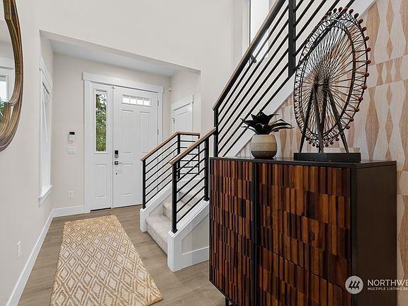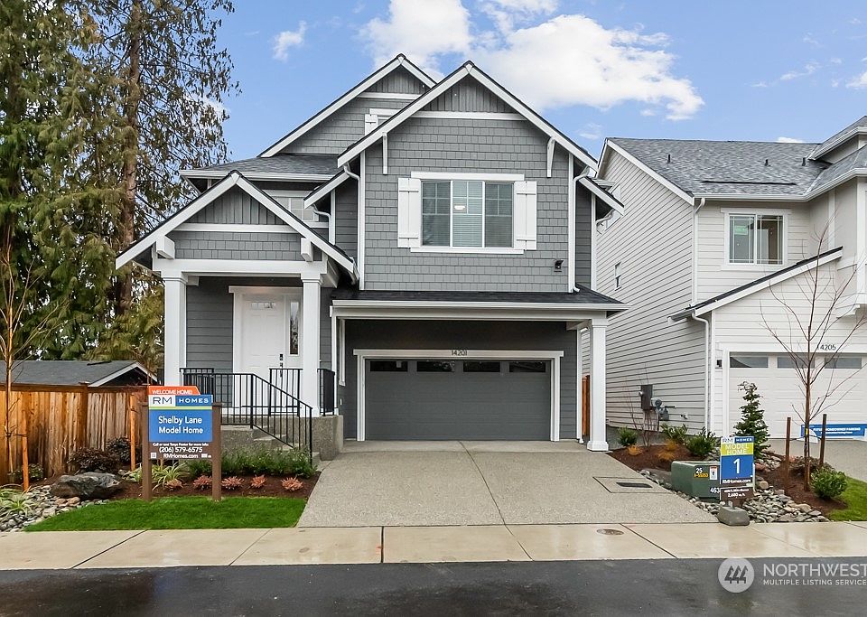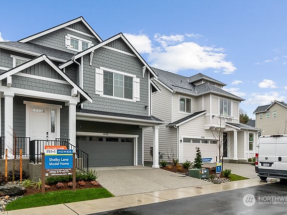 Just released! Shelby Lane. A boutique enclave of 9 homes. 2680 west facing plan with 2 car garage boasts a lower-level kitchen/dining/living area with gorgeous chef's kitchen, gas range, soft close cabinetry and sleek quartz counters. Farmhouse sink w/motion sensor faucet. Gas fireplace and patio opens to nice size yard. Hard surface flooring on lower level with rich trim details throughout. Owner's suite with luxe shower and bath, soaker tub and WIC. This home has generous guest bedrooms and extra 5th and bonus room! Includes blinds, all appliances + A/C! Fabulous Lynnwood location steps to Lake Serene and top Mukilteo Schools. Move in March!