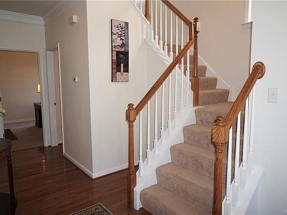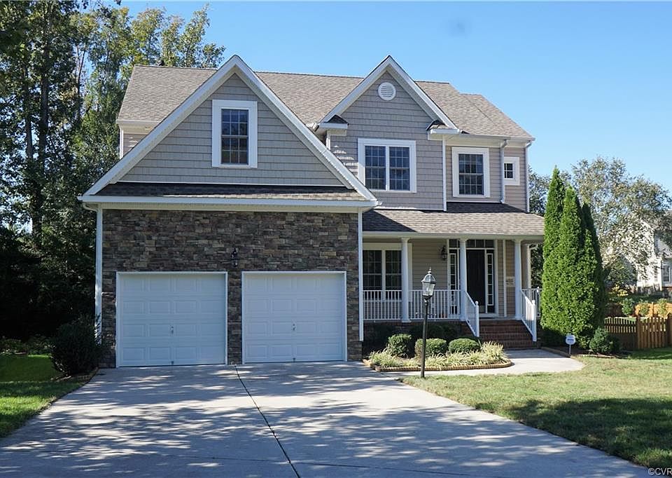 Wow- a beautiful Craftsman-styled home on a desirable, level, cul-de-sac lot that backs to a stand of trees for privacy. The lovely masonry wrap-around porch and stone front give this home so much character! The foyer welcomes you in with an open sightline to the dining room and the lovely turned staircase. The wood floors flow from the foyer/dining room to the living room and kitchen - which are completely open to one another. The lovely vaulted breakfast area is a showstopper, and you'll love the chef's kitchen with seating bar overlooking the family room, and walk-in pantry. The living room has a 2-sided fireplace which is shared by the cozy home office space. Upstairs you'll find a perfectly appointed master suite with sitting area, spa bath, and huge walk-in. Three more nice-sized bedrooms and a double vanity hall bath, plus a HUGE unfinished 3rd floor, ready for your finishing touches (HVAC was sized for 3rd floor). All this in a great Midlothian location just minutes to 288 and Powhite Pkwy, plus close to all the shopping and restaurants of Midlothian.
