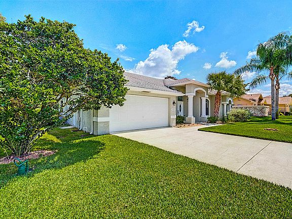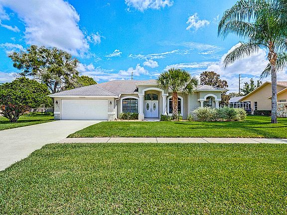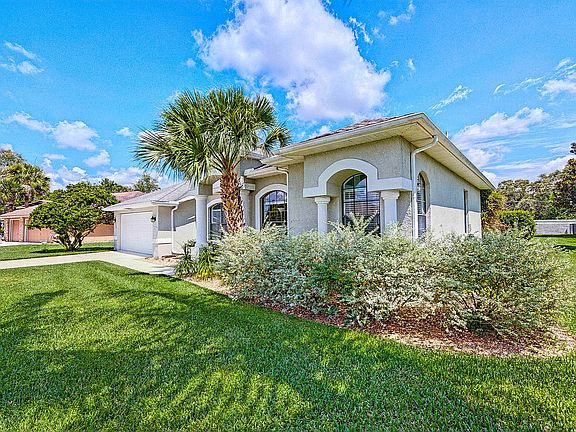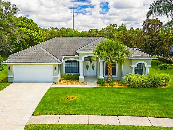 Located in the beautiful subdivision of Pristine Place. Conveniently near the Suncoast parkway, shopping, and schools. Lush yard and landscaping give the home fantastic curb appeal. Double door entry leads you into calming, beachy colors that flow through the home, giving it a Key West atmosphere. Light and bright living area with French doors leading to the den or office. Add an armoire and you have a 4th bedroom for guests. Decorative window trim on all windows, and chair railing in the den. Your dream kitchen awaits! Completely updated with painted maple, glass front cabinets, accent lighting, marble countertops, stainless steel appliances, decorative backsplash, and a farm sink. Captivating Capiz shell chandeliers in the dining room and kitchen. Beautiful, laminate, tile, and carpeting throughout the home. 10 ft soaring ceilings open up the entire home. Guest bedrooms are both a comfortable size. Master bedroom has access to the lanai and a private bath. Master bath is gorgeous and includes dual sinks, a sunken tub and walk in shower. Newly resurfaced lanai area is great for entertaining or relaxing. Heated pool for year round swimming and a spa to ease those muscles. Enormous back yard is great for the little ones or pets to play. A wonderful place to call home! Come view today!