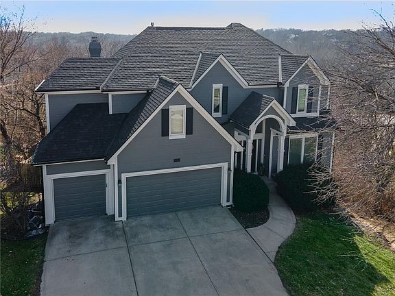 This beautiful home is situated in one of the few private treed lots at Lakeview Estates, a beautiful place to live, the neighborhood is nestled in forested hills in Shawnee, boasting a private community lake for fishing and swimming, 3 swimming pools, tennis/pickleball/basketball courts and the Award-winning Shawnee Mission Schools.