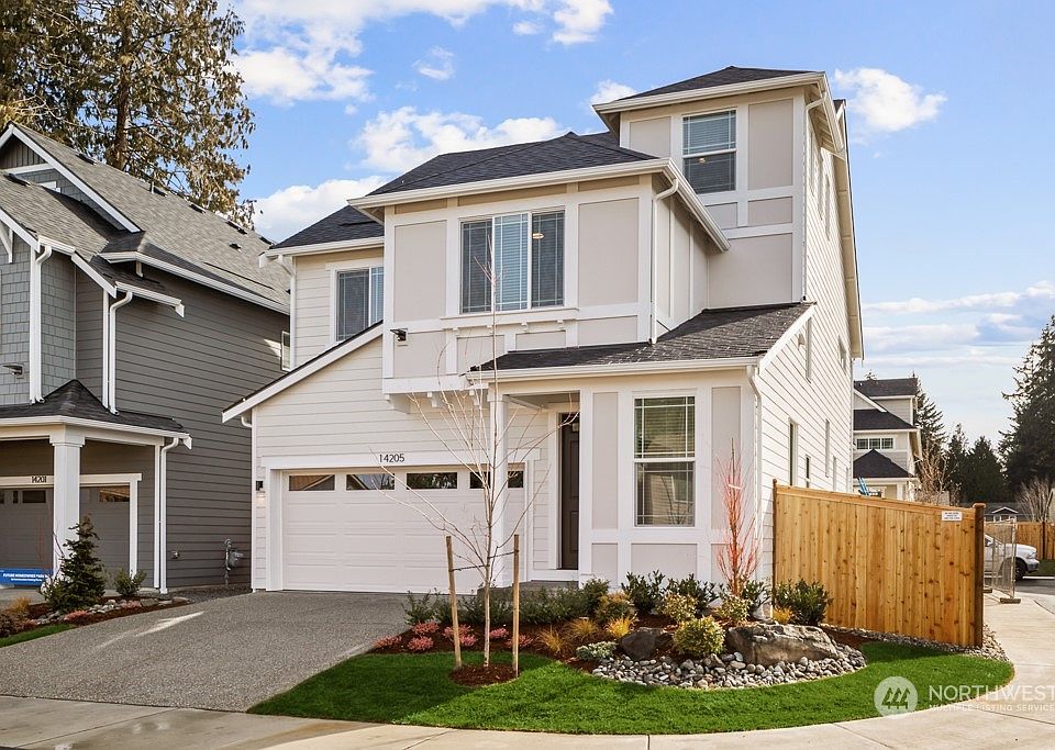 Just released! Shelby Lane. A boutique enclave of 9 homes. 2352 East facing plan with 2 car garage boasts a lower-level kitchen/dining/living area with gorgeous chef's kitchen, gas range, soft close cabinetry and sleek quartz counters. Farmhouse sink w/motion sensor faucet. Gas fireplace and patio opens to nice size yard. Hard surface flooring on lower level with rich trim details throughout. Owner's suite with luxe shower and bath on 2nd floor, soaker tub and WIC. This home has generous guest bedrooms and extra bonus rooms! Includes blinds, all appliances + A/C! Fabulous Lynnwood location steps to Lake Serene and top Mukilteo Schools. Move in March!