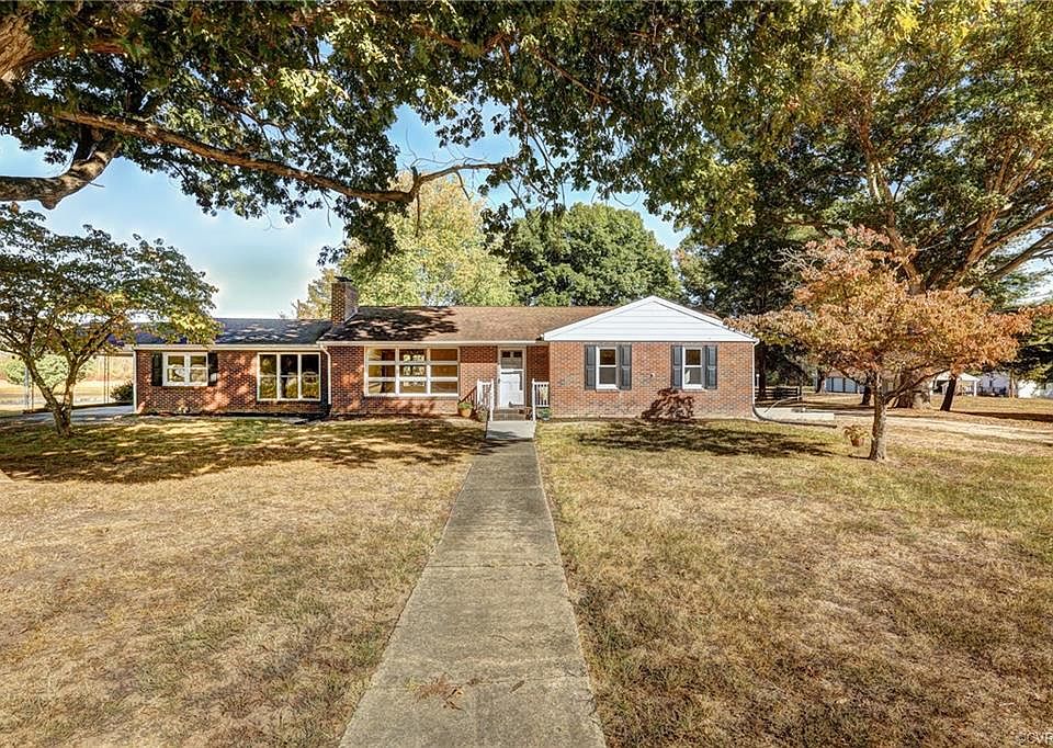 Let's go fishing in your own backyard! 5+/- Acres with more acreage available for purchase. Gorgeous property with a large pond (check out the fish that was hooked in this pond in the photos!) Brick rancher with vinyl trim, 3 bedrooms, 2 full baths, on acreage (survey underway not yet determined), foyer formal living room (fireplace - gas logs non working), formal dining room all with hardwood floors, family room carpeted, office/study, 2 full ceramic baths, huge 1126 sq.ft. unfinished basement (laundry and utility area) lots of room for storage. 12x18 screened porch with ceramic floor to enjoy the beautiful views. 15x22 carport, replacement windows, new well, conventional septic, hot water heater(electric) and heat pump updated in 2013. 3 bay garage with workshop area.