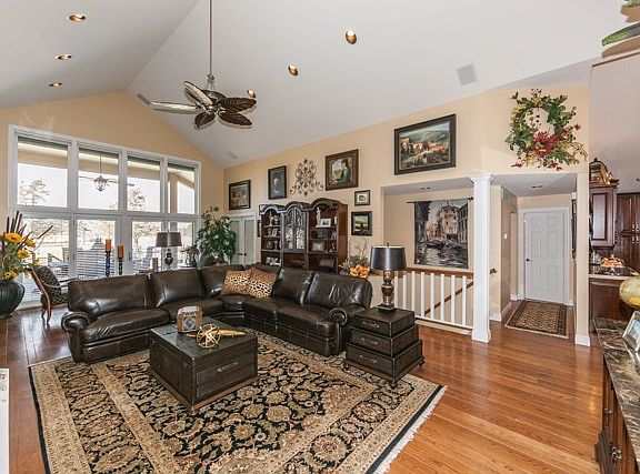 Look no further, this spectacular sprawling ranch is move in ready...it was completely remodeled only 12 years ago! This stunning home features newer vinyl windows, 2 new high efficiency HVAC, whole house stereo system, solar tunnels, elegant living room welcomes each guest with vaulted ceiling, hardwood floors, large windows overlooking the Crestview Country Club golf course and water, French doors that open to spacious covered deck, decorative nooks and built-in curio cabinets with glass shelving to display your favorite art piece, formal dining room with 12 foot high ceiling, large window, and beautiful chandelier, gourmet kitchen complete with granite counter tops, tile backsplash, island with breakfast bar, prep sink, pantry with pull-out shelving, built-in desk, built-in TV/microwave nook, under and over cabinet lighting, vaulted ceilings with recessed lighting, built-in speakers, and built-in wine rack. Spend restful nights in the fabulous main floor master suite complete with hardwood floors, vaulted ceiling, recessed lighting, his and her walk-in closets with built-ins, French doors to the deck, and private spa-like bathroom with tile flooring, granite counter tops, his and her sinks/vanity areas, jetted tub, separate tile shower, and glass block window to bring in the natural light. Enjoy just hanging out in the finished basement which features large rec room with wet bar with another dishwasher, fireplace, two built-in decorative shelving areas, and built-in speakers. This lower level also features a second laundry area with sink, extra cabinets space, and storage closet, a huge bedroom with walk-in closet, bonus room with walk-in closet, and an abundance of storage space. Sit back and relax this summer out on the expansive covered deck with 3 ceiling fans, wired for TV, large patio area, heated pool with new filter system and new automatic cover, and wrought-iron fencing! This home also features newer gutters with gutter guards, newer exterior lighting including security lights, newer wiring, plumbing, 2 newer breaker boxes, newer light fixtures throughout, new 50 year roof installed in 2010, 2 sump pumps with water back-up, and 18' exterior electric sunshade on main level of the deck. Impeccably maintained and Truly a must see!