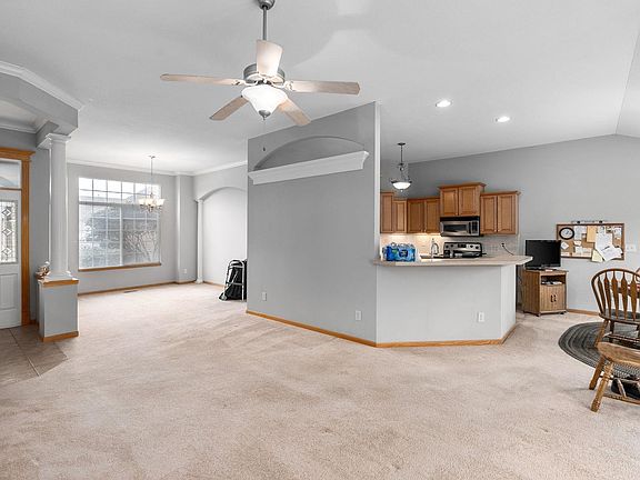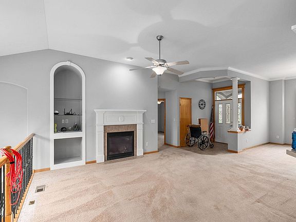 Don’t miss this incredible opportunity to own a 5-bedroom, 3-bathroom home with a 3-car garage priced below tax appraisal value! This home offers outstanding space and value for the area. The main level features a large living room with a cozy fireplace, formal dining room, and a bright breakfast area. The kitchen includes custom wood cabinetry and appliances that transfer to the buyer, making it move-in ready. The finished basement adds even more living space with a huge family room, wet bar, and additional custom cabinetry—perfect for entertaining or relaxing. Step outside to a massive backyard backing to a peaceful pond and tree line, complete with a sprinkler system. While the home could use a little cosmetic TLC, it’s been priced to sell quickly. This is a true bargain for this size of home and location and a great opportunity to build some sweat equity! Schedule your showing today before it’s gone!