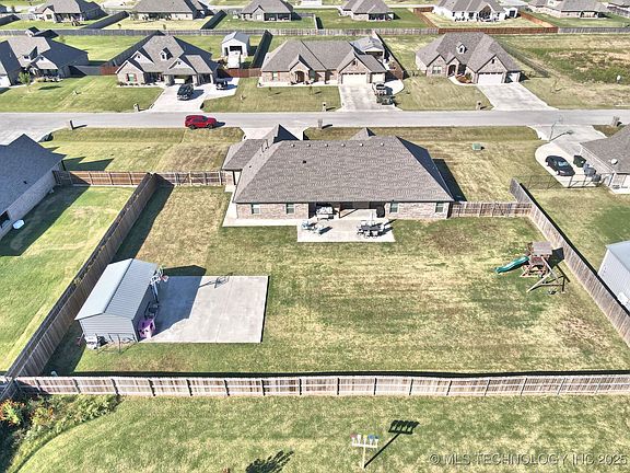 Top-notch newer construction with an excellent floor plan and abundant storage. The gourmet kitchen features custom cabinetry and vent hood, exotic granite and a large walk-in pantry. The primary suite offers a spa-like bath with a tiled step-in shower, separate tub, and dual vanities. Crown molding, wood beams, and built-ins add distinctive character throughout. The flex room with an oversized closet can serve as a fifth bedroom, office, or playroom as per its current use. Additions include custom blinds throughout, full gutters, a 12 x 20 metal shop and $10,000 in concrete work with an expanded patio and wraparound sidewalk. Experience the perfect blend of quality, thoughtful design, and everyday comfort in this exceptional home.