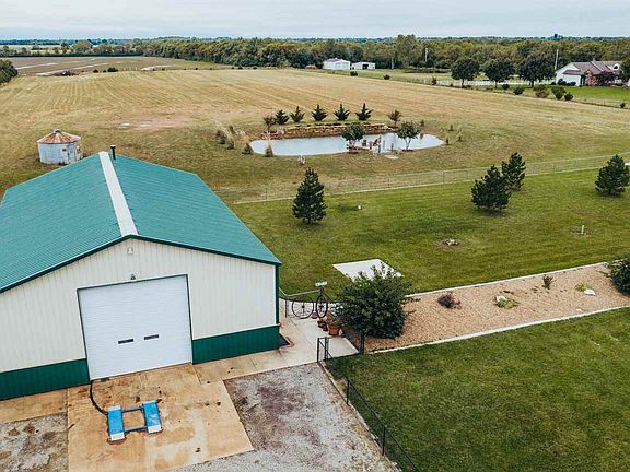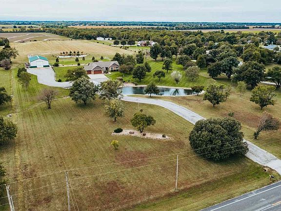 Pride of ownership and country living shows in this amazing home and property. Come home up your paved winding drive to this magnificent 3,278 sq ft ranch centered on 11 fenced acres with immaculate landscaping, ponds, treed, and fenced yards with an extra large 40'X60' deluxe outbuilding, and pasture for livestock. Enter thru the foyer and savor the warm welcoming atmosphere of the main floor featuring a large hearth room with newly installed luxury vinyl plank flooring, vaulted ceiling, first fireplace and large windows for natural light. Appreciate cooking in the country styling of the granite/stainless steel fully applianced kitchen, featuring a crafted copper farmers sink, pantry, dining area, and access to the covered deck for picturesque views of landscaping, wildlife, pasture, & sky. Escape in the evening to main level master bedroom suite with vaulted ceiling, decorative nooks, and sliding glass door to access the private deck for relaxation, reading, or just quiet time. Soak away the day in the master bath featuring a jetted soak tub, a large shower, his and her sinks and a walk-in closet. Main level laundry room features tile flooring, extra storage cabinets and hanging rod, Kick-back and entertain in the naturally lit walk-out basement's extra-large family/rec/game room featuring a partial second kitchen-wet bar, wine racks,eating area, wood-burning fireplace, built-in entertainment center, bookcases, desk, window seat and huge window, as well as access to the covered patio and ex-large decorative grilling/picnic patio area. This move-in ready home also features 50 year Malarkey roof, concrete siding, newer exterior paint, highly efficient Geo-thermal HVAC system, new 6" guttering, Pella windows and doors, central vac system, a salt delivery system to the water softener, finished 3 car garage with pull-down stairs to floored attic for extra storage space, R-49 ceiling insulation, two sprinkler systems and much much more. In addition, property includes a large fully insulated cooled/heated 40'X60' shop features 2-way access for animals and/or vehicles and equipment. Shop also includes a private bathroom with shower, a 2 post Titan post automotive lift, insulated overhead doors, 200 amp service, a security system, a double barrel wood-burning stove, evaporative cooler hooked to the well for cooling, RV and/or equipment slab, and more. (See additional list). Wait there is more....From the viewing dock, feast your eyes on the beauty the well fed pond nestled in the landscaped fenced pasture. Especially,created for swimming and leisure. One year Home Warranty provided to buyers. All info deemed reliable but not guaranteed. This property may or may not have audio/visual surveillance.