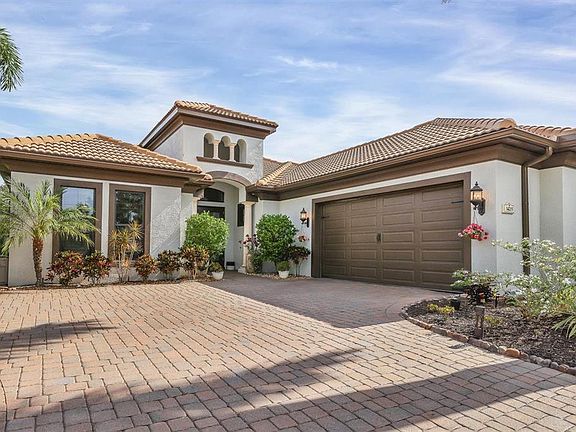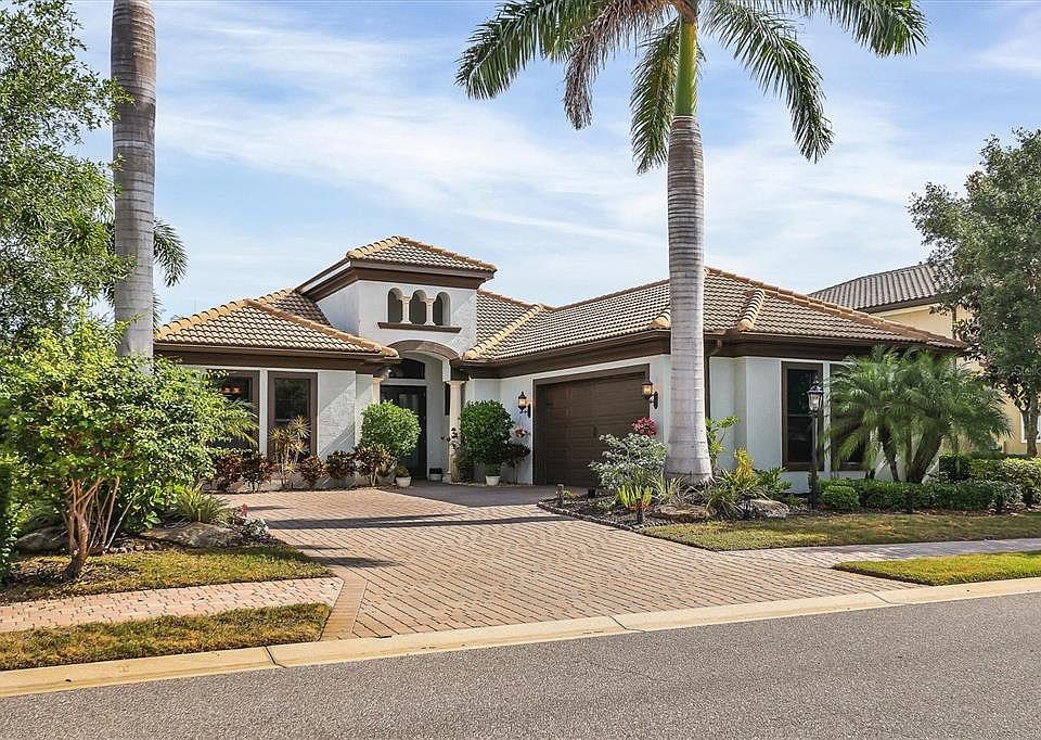 With expert attention to detail and the trusted craftsmanship of Arthur Rutenberg, this Country Club East residence is sure to check all the boxes on your wish list. The curb appeal is second to none with tropical landscaping, large paver driveway, barrel tile roof, freshly painted exterior, and included grounds maintenance. The double glass door entry leads you into the gracious foyer with volume ceilings and in-laid tile design, plus crown molding and LED recessed lighting throughout the home. Entertain in the oversized great room with custom wood tray ceiling and custom surround sound. The chef's kitchen is the heart of the home with abundant solid wood cabinetry with LED underlighting, a large central island, a high-bar overlooking the great room, mosaic tile backsplash, quartz counters, and built-in desk. Enjoy gourmet dishes from the stainless steel appliance suite including a 6 burner gas cooktop, French door refrigerator, and built-in oven - plus a convenient wine refrigerator located at the high-bar. Overlooking the lush landscaping and sparkling pool and spa, you'll love the view while enjoying casual meals at the dinette. This functional floor plan also includes a formal dining room with art gallery lighting and large display niche. The cozy den in encased in custom wood bookshelves to display your literary collection or family photos. Your new master suite features dual walk-in closets with custom built shelving, wood flooring, and a sitting area to enjoy the greenery right outside your windows. The en-suite master bathroom has a functional flow with two separate vanities, stone counters, expansive linen closet, soaking tub, wood framed mirrors, and walk-in shower with built-in bench and frameless glass enclosure. Rounding out the accommodations are two guest bedrooms with wood flooring and two full guest bathrooms. The laundry room is large enough to actually allow you to enjoy the process; with ample counter space, large storage closet and cabinetry plus an ironing center. Enjoy warm nights on the paver lanai with outdoor kitchen and grill, a sparkling heated pool and spa, spacious backyard, large storage closet, and convenient half bathroom with extra cabinetry. Extra peace of mind is afforded by a whole home water softener, water filtration, generator, and safe room in the oversized garage. Country Club East provides the most sought after amenities in Lakewood Ranch including community fitness center, walking trails, community pools, gated entrances, and the Retreat clubhouse. You can also become a member of Lakewood Ranch Country Club to experience the 3 ~ 18 hole championship golf courses, tennis, two clubhouses for dining, state-of-the-art fitness center and more. Lakewood Ranch is one of the top-selling master-planned communities in the country with award-winning shopping, dining, A-rated schools, parks, and nearby beaches. This home is finely appointed with an exceptional builder, a coveted neighborhood with privately gated roads with a soothing, tropical oasis view and a maintenance free environment...this home is one to see.