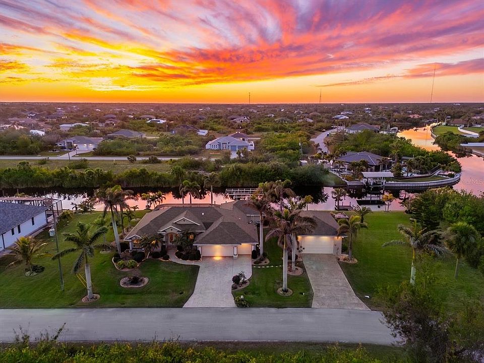 Step into this EXPANSIVE WATERFRONT RETREAT, where over 27,000 square feet of prime property invite you to embrace the ultimate coastal lifestyle! With 246 feet of waterfront, a private boat ramp, two docks, a covered 12,000-lb lift, a fish-cleaning station, and underwater fish lights, this home is a true paradise for boating and fishing enthusiasts! Storage and convenience abound with a 3-car air-conditioned/heated garage AND a detached 816-square-foot tandem garage featuring dual 12-foot doors, ideal for boats, RVs, or recreational equipment. Designed by Halvorson, this custom-built masterpiece blends timeless elegance with modern comfort. Featuring a neutral palette, over 2,600 sq. ft. of living space, 3 bedrooms, 2 baths, a cozy den, and a family room complete with a fireplace and wet bar, this home is perfect for both relaxation and entertaining. With stunning waterfront views from every room, you’ll experience serene beauty and tranquility throughout the entire home. The kitchen boasts granite countertops, ample cabinetry, stainless steel appliances, and a spacious pantry for effortless cooking and storage. The large dining room overlooks the water, offering breathtaking views and a perfect setting for every meal. The spacious primary suite is a private oasis offering a spa-like en-suite bath with dual vanities and a large walk-in shower with dual shower heads. Thoughtfully placed on the opposite side of the home, the guest suites each enjoy their own pool access, creating a serene retreat for family and visitors. Outdoor living is at its finest with WESTERN EXPOSURE, a heated saltwater pool, a tranquil stone waterfall, and an outdoor shower. Outside the pool cage you will find an expansive entertaining area with a fire pit making the backyard the perfect setting for unwinding or hosting unforgettable gatherings. This exceptional home also features a brand-new roof on both the house and garage with a transferable warranty, impact windows and doors, a whole-house filtration system, built-in surround sound, and extensive landscaping with curbing with irrigation. This one-of-a-kind waterfront property combines luxury, privacy, and unmatched outdoor living. Enjoy nearby pristine beaches, top-rated golf courses, and a variety of dining and shopping options, all just minutes away. Schedule your private tour today and experience the lifestyle you’ve been dreaming of.
