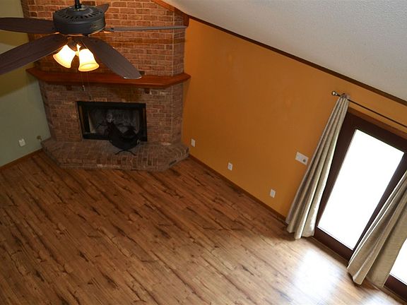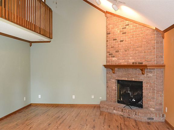 Brick and vinyl home features 4 bedrooms, 2 1/2 baths, fireplace in living room. First floor den/office. 2016 main floor coverings and upstairs carpet/tile. French doors lead to backyard patio. Attached 2 car garage with storage.