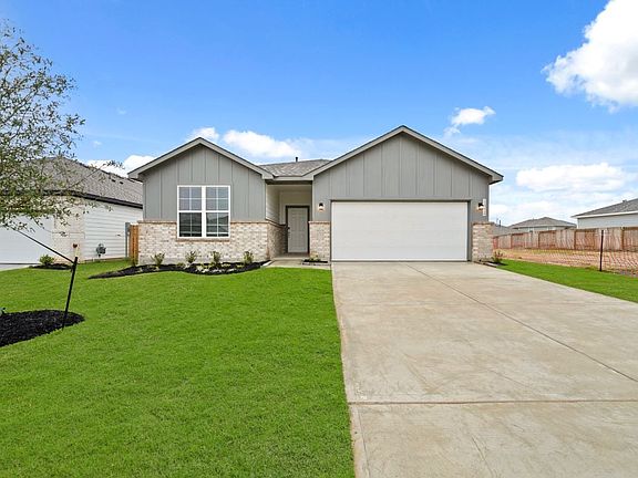Boasting a beautiful and functional single-story layout, the Brazos plan welcomes you with a charming front porch entrance. Inside, the home is anchored by an open-concept living area, with a spacious great room that flows into a versatile dining area and a well-appointed kitchen with a center island. Toward the front of the home, the foyer leads to three secondary bedrooms-two that flank a full bath and one with an attached full bath and walk-in closet. Located on the other side of the home for added privacy, the primary suite features an attached bath and a generous walk-in closet. A laundry room is also accessible through the primary suite. Personalization options may include a study in lieu of a bedroom, a grand primary bath-featuring a separate tub and shower-and a covered patio off the great room.