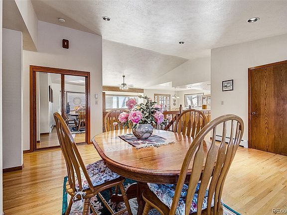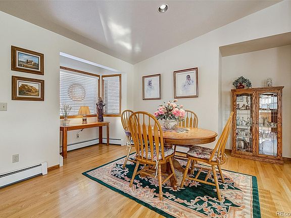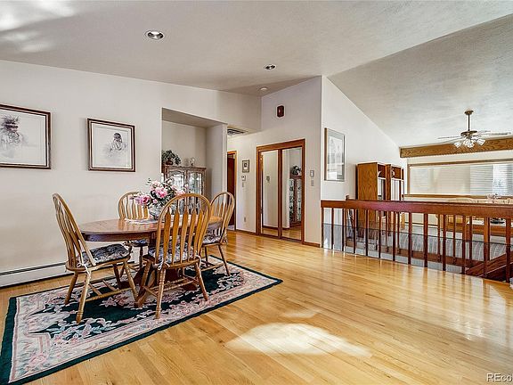 Lovely Strawberry Knolls ranch showcasing spectacular views of North Table Mountain! Nestled on a quiet, tree-lined street in unincorporated Jefferson County, this move-in ready home offers a bright, open-concept floor plan with vaulted ceilings and hardwood flooring. The polished kitchen presents Corian countertops, an abundance of storage space alongside a peninsula with counter seating. The adjoining breakfast nook opens to the backyard deck, where you can take in views of the horse pasture directly behind the home. The main floor primary suite delights with a walk-in closet and en suite bathroom. Downstairs, the finished walk-out basement offers a private office (or non-conforming bedroom), guest bedroom, utility room and an expansive great room with a cozy wood-burning stove. A sliding door provides access to the fenced backyard, which includes a covered patio and storage shed with a horse stall. Horse boarding is available on the property directly behind the home. Explore the trails and recreation opportunities that await you at nearby Van Bibber Open Space. Enjoy this quiet location without sacrificing convenience - find King Soopers, Target, Ward RTD Station, Applewood Golf Course and more all within 10 minutes!