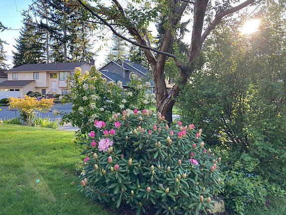 Enjoy this 3bedroomed freshly remodeled home. With newly painted intier, newer carpet and new moldings; this two-story home is a treat. The beautifully landscaped, park-like back yard is fully fenced with a gated entrance to the greenbelt and front yard. It has beautiful flowering gardens with a dedicated space for a vegetable garden. It has three patios for entertaining. The side yard has a gate and dedicated space for an approved RV. The den off the kitchen is vaulted and has big windows facing the backyard. The kitchen has granite counter tops and ss appliances. It is adjacent to the dining room. The bright living room has a woodburning fireplace and large windows. A special mount for the tv lies just above the fireplace. Thoughtfully designed, the outlet is just behind the tv, hiding all wires from view. The home has an open space floor plan with the dining and living room combined. The quest bathroom downstairs has a beautiful marble sink with fountain facet and bowl sink. and walls custom painted. Just upstairs, the large Master bedroom has a bright walk-in closet. The master bathroom has a spa shower, a white Eng. stone vanity w/recessed medicine cabinet w/ beveled mirror, and a wall mounted, retractable makeup mirror and bright walk-in-closet. The two other bedrooms share a tiled bathroom with soaker tub and shower, with adjustable dual shower wand. Both bathrooms have luxury vinyl tiles for flooring and shower walls, new toilets and sinks. New, interior paneled doors and door frames have been recently installed with upgraded handles. The two beveled mirrored closet doors add style to the two secondary bedrooms. The extra-large capacity washer and dryer are stacked in the garage with a shelf and countertop to the side for folding laundry. The double car garage has open space for additional storage. Nestled in Silver Firs, the home is in one of the best neighborhoods for schools. And for recreation and leisure, the neighborhood has multiple types of sports courts, playgrounds, walking and interurban biking trails, tree line streets, dog parks, community parks, and a YMCA with indoor pool and slides. In summer it is especially nice, with Saturday markets, summer concerts, a water park and more. With great direct bus service to downtown Seattle, Pain Field Airport, and Edmonds you can enjoy the conveniency of a well serviced and eco-friendly community. Landscape: The tenant is responsible for frequent watering and weekly mowing the grass in summer and keeping the lawn free of pet excrement and occasional raking of leaves and limbs as needed for the health and quality of the landscape. Tools need to be replaced in the shed for storage after each use. table set should be covered in winter. Landlord will take care of trimming of plants and other seasonal maintenance of yard. No removal, transplanting or altering of any established plants in the landscape or greenbelt without consulting the landlord first. House comes unfurnished. There are included some yard tools, an outdoor table and chair set, firepit and a mower. These remain with the house. There is parking for two cars inside garage, openers included. No additional cars allowed. On the side of the yard, tucked back out of view and inside the fence, is a dedicated spot for an approved RV. No parking on grass or fixing of cars on property is allowed as per HOA. Tenant will agree to HOA terms as part of lease. No Smoking, including pot in house! Only approved pets allowed and will be evaluated on an individual basis for acceptance. They will be registered into the lease addendum and follow all rules within and have a separate deposit. All repairs will be made by the landlord or others contracted by the landlord. All adults must pass a background check The carpet should be vacuumed and maintained. A new in room portable AC has been installed in the master. With the tower fan, the upstairs remains cool on warm days. They remain with the house, and the new one has the box for storage when no longer in use. A new screen door off the patio has been added for cooling downstairs during warm weather. Any repair issues will be address by owner. Window coverings stay with house. Small water damage to kitchen wood floor by sink will not be addressed. Wood Floor is water resistant not waterproof and needs to be wiped dry when spills occur. Please use the green bin for grass trimmings and yard waste, as dumping in green belt or cutting of trees is forbidden. You may gather and use precut and left wood for firewood inside back yard. Firewood will be stacked in CURRENT LOCATION, AWAY FROM HOUSE. All lawn equipment is in working condition and is not maintained by landlord. General upkeep for long term use may be necessary. Fires are allowed in an in-closed pit, like the used one included and placed on the brick patio away from trees and using DRY Wood ONLY so you don't smoke out the neighbors. Once wood is gone owner will not replace.