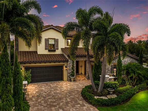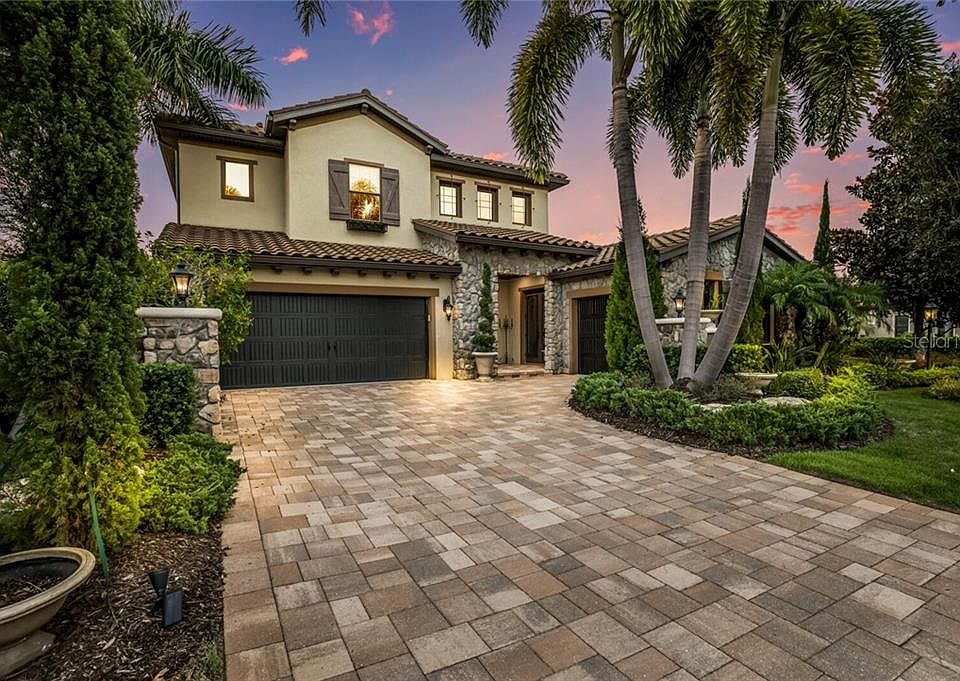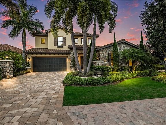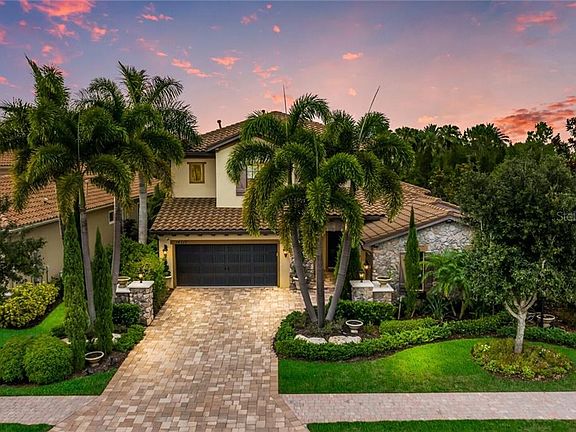 Former Palazzo Model from Cardel is now available for purchase! Talk about upgrades, this 3700+ square foot home features over $430,000 of upgrades and is truly a work of art! From the moment you step inside you will be met with the highest level of finishes for the most discerning buyer. The two story entrance with soaring ceilings, features exquisite crown molding, marble floors, a two-way stone fireplace and a wine room with iron door and stone walls. The gourmet kitchen features the best of the best, with Sub-Zero refrigerator, Wolf range, Bosch dishwasher, spectacular crystal chandeliers and a massive center island for entertaining. Formal dining room has custom ceiling treatment and butlers pantry. Open your sliding doors and step into a spa like oasis exuding tranquility and serenity with waterfall features, fire bowls and a stone fireplace for intimate nights by the fire. The backyard is your own personal park-like setting with space for the family and the furries. First floor master is spacious with exceptional custom closet, glorious master bathroom with dual sinkds, granite counters and silver tub! Travel the stairs with wrought iron handrail, to two guest bedrooms with walk-in closets. Generous size second floor bonus room is large enough for pool table, wet bar and second floor terrace to overlook the luxurious green space and outdoor oasis. This home is unique in every way and must be seen to be appreciated! This former Palazzo Model is located behind the gates of Lakewood Ranch Country Club East where residents enjoy golf, tennis, excellent schools, community gym & pool. Country Club East is conveniently located near Interstate 75, nationally ranked beaches, shopping and restaurants. This home is priced to sell and won't last! Make your appointment today and start living the Florida lifestyle!
