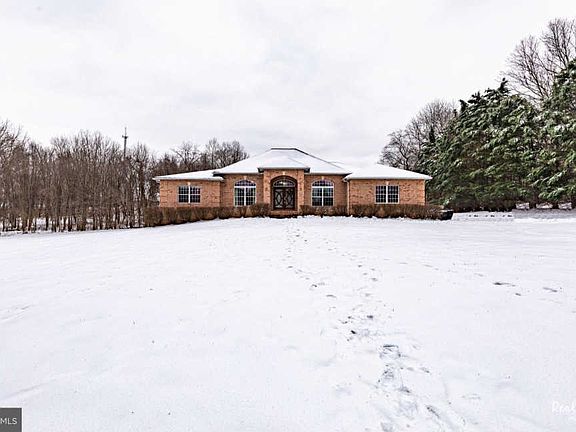 If you are looking for that sprawling Georgian- style Rancher with privacy, a beautiful yard, neighborhood feel, and an open concept look no further. This home has room for everyone with four bedrooms upstairs and the possibility of two more in the lower level. The solid brick front boasts impressive covered front porch and wooden French doors which welcome you into the grand marbled floor entry. The main level has an open concept with vaulted ceilings, skylights, palladium transom windows bringing the outdoors in. Great Room with built in shelves and gas fireplace, hardwood floors and 12 foot sliders to the outdoor patio with firepit for hosting the best backyard barbeques. The kitchen has tons of cabinet and counter space with a central island and gas cooktop. There is a formal dining room right off the kitchen as well as a sunny breakfast nook for more casual meals. The main level master bedroom has walk-in closet and stunning marble bathroom with walk-in shower, soaking tub, and double vanity. There is access to the patio from the master bedroom as well. There are an additional three beds on the main level. The lower level has a laundry room, finished storage/utility room, two possible bedrooms, full bath, finished rec room currently set up as a home theatre, beautiful wrought iron bar, and work out room. Lower Level has doors to side yard and windows. Plenty of parking in the driveway and two car garage. The yard is nearly 3 acres and features a stream and woods as well wide open space for soccer and lax goals. Enjoy the Four Corners location where you can walk into Jacksonville and grab lunch at Brookside Market , zip down the Pike to Towson for shopping, take Paper Mill Rd to the trail for a bike ride or into Hunt Valley to Wegman's. Close to everything! Convenient, yet serene setting.