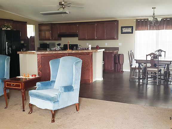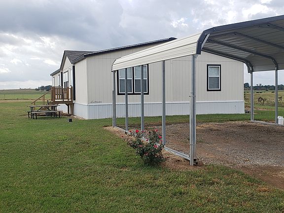 Well maintained 2018 Solitaire manufactured home on 5 acres. 1856 square feet (32x58). 4 bedroom/2 bath. Entry into property has a gate providing both privacy and security. 2 bay carport located at one end. Spacious open concept living area. Kitchen includes a walk in pantry with beautiful frosted glass door. Stained cabinets provide a wide array of storage options. Spacious master bedroom with master bath which includes a large whirlpool tub, walk in shower, double sinks and lots of natural light. This property is currently part of a larger acreage. Seller to provide new legal description for 5 acres at closing. Water to mobile home currently is via a line from the adjoining property. No water well exists on this property. A new well shall be drilled to accommodate the mobile.