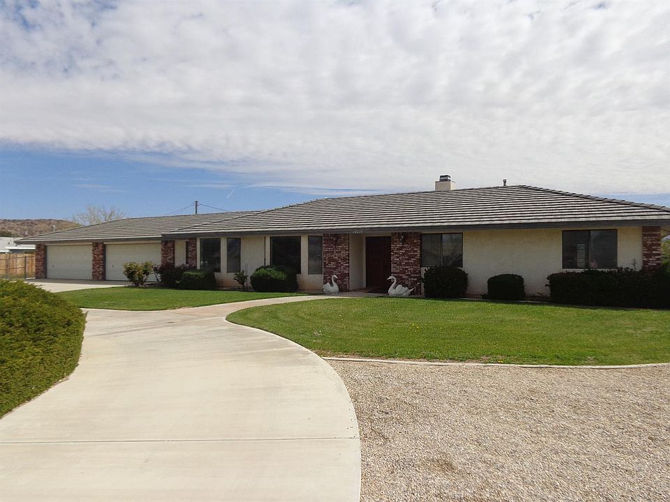 Beautiful Apple Valley home 4 bedrooms 2 bathrooms Formal living room and Dinning room Beautiful brick fireplace in family room Big open kitchen with a breakfast nook Master bedroom has large walk in closet. Circular drive way Low water maintenance landscaping. Back yard is huge with two RV parking and RV dump. 4 car garage Super big