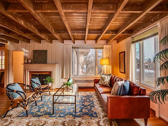 Welcome to this charming single-story corner lot home located in the West area, where classic elegance meets modern comfort! Beautiful front lawn with mature landscaping wraps around to the side yard and leads you to the front entrance. As you step inside, the warm ambiance of the wood floors invites you to explore further. The spacious living area features stunning wood coffered ceilings that add depth and character to the space. The centerpiece is a wood burning fireplace that just beckons you to unwind and relax and a cozy alcove with built-in shelves makes for the perfect place to curl up and read a book. The galley-style kitchen has ample Countertop space for meal preparation, cooking, and hosting. The open-faced shelving creates an airy and inviting atmosphere, providing both storage and an opportunity to showcase your favorite kitchenware or decorative pieces. Connected is the bright expansive family room and dining space. A standout feature in this space is a paneled wall that conceals hidden built-in shelves, a clever addition that combines sophistication with practicality. Large windows and strategically placed doors provide easy access to the two-car carport and the backyard patio. Bedroom Hallway with built in storage houses three nicely sized bedrooms with built in storage and a full guest bath with tile flooring and single sink vanity. From the Living Room there's a separate private hallway with access to the backyard and the large Primary En-Suite with laundry closet. A full bath with tile floors and shower/tub surround, and single sink vanity. A large fenced in backyard with grass, mature landscaping and trees create a beautiful private oasis. A covered patio adorned with skylights ensures the patio remains bright and inviting even during overcast days, or Gather around the built-in brick fireplace for stories and s'mores on cool evenings. Don't miss out in making this delightful home yours, book your tour today!