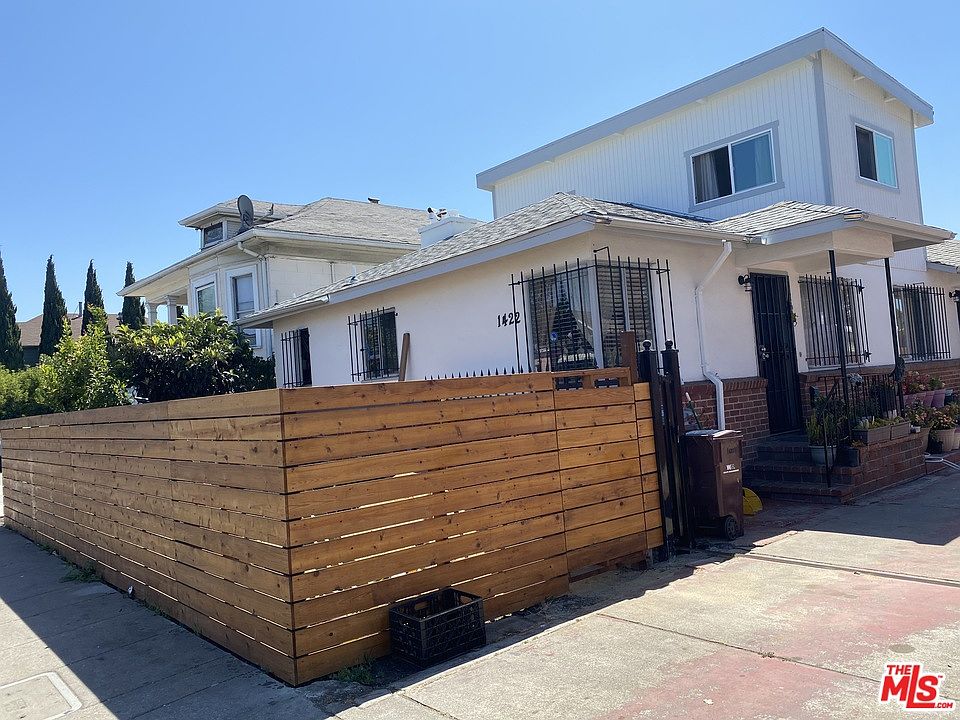 Super 1950s Duplex. 4 bedrooms 2.5 baths total. Well built. Front unit, three bedrooms one and a half bath. Hardwood floors and tile floors. Charming original tile in the bathrooms. This unit has a master bedroom on the second floor. Newly fenced front yard. Metal gate. Long driveway to the back carports. Lots of parking in the back. Back unit is attached: One large living room, one bedroom and one bathroom. Lots of windows make these units light and bright. Both kitchens were built cabin style with wood walls and ceilings. The exterior is newly painted. New shingle roof was installed about 3 years ago. New copper pluming was installed less than 10 years ago. This is a solid duplex with lots of potential. Both units are occupied by tenants. The units to be delivered occupied. Close to transportation, shopping, places of worship and freeways. Fire Station is across the street. Great income opportunity and also could be the new owners residence in one of the two units in this up and coming Oakland area duplex.