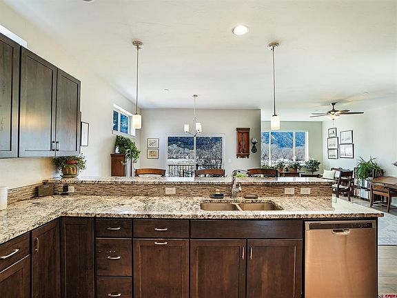 Never before listed, take advantage of this amazing opportunity to own one of the few coveted end-units in Crimson Cliffs Townhomes! This light 'n bright unit is part of the Phase IV development and boasts natural light and incredible views from nearly every room. As you enter the home, you're greeted by a foyer that wraps into an open kitchen / living room concept on the main level. Elegant engineered wood flooring runs throughout, with a conveniently located powder room on the main level as well. The kitchen is well appointed with granite countertops, a breakfast bar, induction stove, convection oven, microwave, and dishwasher all adorned in stainless steel. The eat-in dining room opens directly onto a covered back porch with sweeping views of the red cliffs of the Animas River Valley. On the second level you'll find three amply sized bedrooms and two bathrooms with engineered wood and tile flooring respectively. The large primary suite has a sliding glass door that takes you out to your private covered patio, an entrancing place for morning coffee/tea/sunshine while enjoying huge views of the valley. The primary bedroom also provides you with a large closet and attached five-piece bathroom. The second and third bedrooms not only share a full bath, but have doors to yet another covered porch with views of the mountains to the west and north. Other amenities in this single-owner townhome include but are not limited to: an oversized two-car garage with access to main level, whole home surge protector, and more. This one of a kind home on Animas View Dr. will not last long, schedule your viewing today!