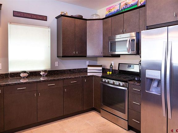 LOOKING FOR AN UPSCALE, MAINTENANCE FREE TOWNHOME IN DURANGO, COLORADO? Consider this one. Built in 2013, upgraded end unit is 1869 s.f. with 3 bedrooms, 2 baths and a 2 car attached garage. Views of the Animas valley, red cliffs, the river and wildlife. Peaceful setting. Privacy of an end unit in an excellent location at the back and center of the complex overlooking the 4 acre park residents share. The park has a gazebo for picnics, a pond and space to run, play or walk the pets. This unit is the sought after 2 story floor plan. The main level has the entry, living, dining, kitchen, half bath and garage. The upper level has the master suite, 2 additional bedrooms, full hall bath and the utility room. A great deal of storage and built-ins here. Quality shines through. Alder doors, hardwood floors, wood baseboard, 3 sky tubes, Bali cellular shades throughout, granite countertops, stainless appliances, 5 burner range/oven is convection too, spa-like master bath and more. The seller has enjoyed the added bonus of 3 covered decks offering 3 season outdoor living. Great places to container garden. The 12x7 deck off the dining room is plumbed for a natural gas grill, and its included. The master has an 11x12 private deck with views. The additional bedrooms share a 14x11 deck. Thats 370 s.f. of outdoor living rooms! Crimson Cliff Townhomes are located on the north end of Durango. Minutes from downtown. Close to skiing, golfing and all the outdoor recreation Durango has to offer. Just a mile from the Oxbow river park to enjoy river sports or just lounge at the beach. Train enthusiasts will delight as the train rolls by. The City of Durango is working to extend the Animas River Trail for biking and walking right out the back door. Lock and leave. Vacation rentals ok. Pets welcome. This townhome is hard to beat when it comes to location, quality and livability. Comes see it for yourself, today. HOA: Dues are $275 per month. They include;