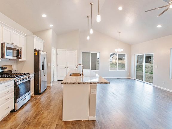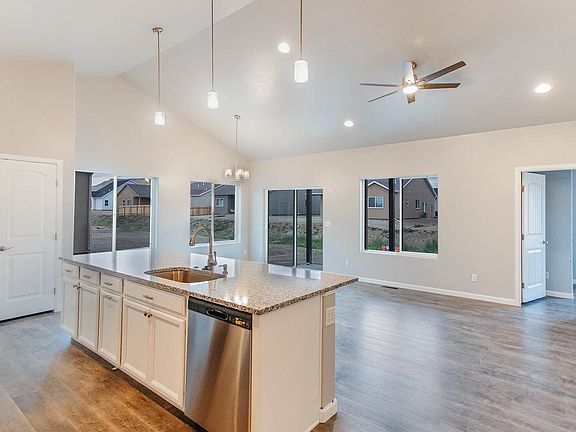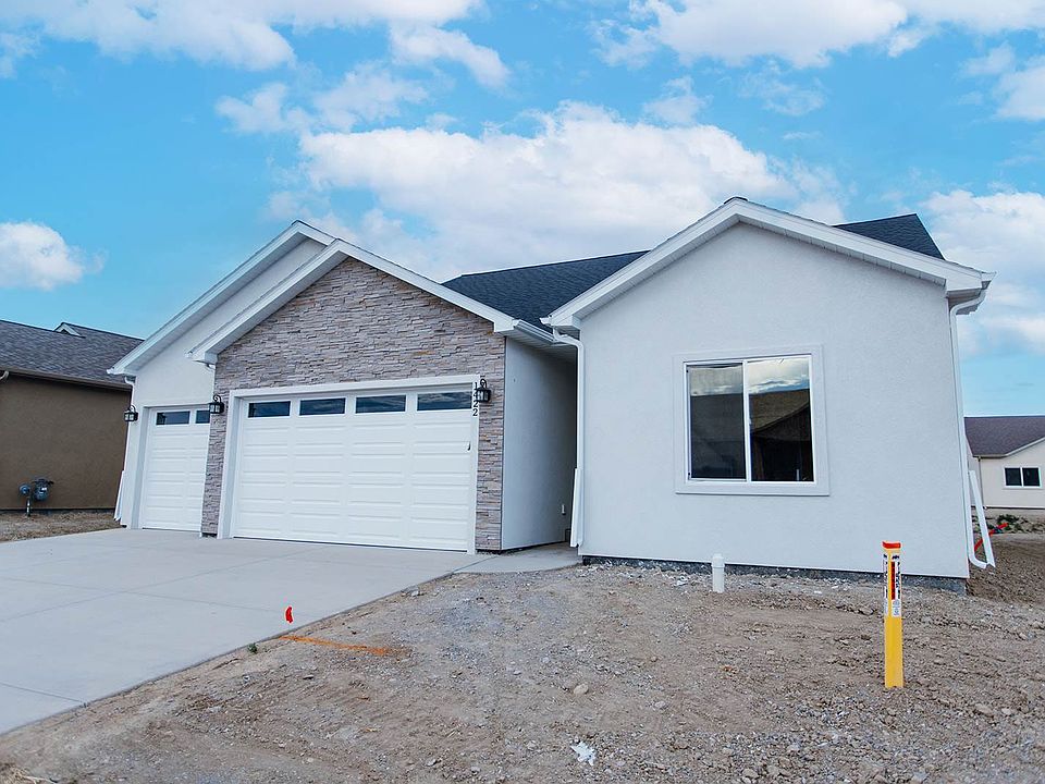 Estimated completion of June 28, 2022, for Ridgline Homes' 4 bedroom ranch style San Miguel model. Open concept living, dining and kitchen with large kitchen island and pantry. Master bedroom with double vanity in master bath. Three additional bedrooms and full bath. All appliances including washer and dryer included. Painted white cabinets with soft close doors and drawers, granite countertops in kitchen and baths. Storage closet in laundry room. Durable laminate flooring throughout with tiled baths. 9ft ceilings, hand-trailed textured walls, bullnose corners, nickel fixtures, LED lighting, forced-air gas heat, central air conditioning. Three-car garage with openers and keypad entry. Stucco, stone exterior. SELLER, RIDGELINE HOMES, WILL CREDIT $7000 TOWARDS BUYER CLOSING COSTS AND/OR INTEREST RATE BUY DOWN IF BUYER CLOSES USING ONE OF SELLER'S PREFERRED LENDERS, ACADEMY MORTGAGE MONTROSE OR SYNERGY ONE LENDING MONTROSE.