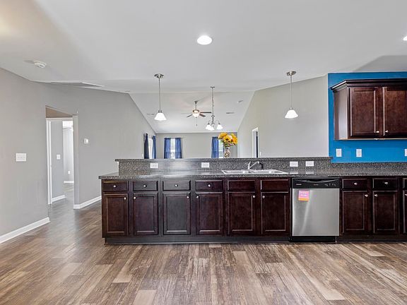 Fairly new, all open concept, charming 3 bedroom home overlooking a pond with a wooded area backdrop. Coming into the home through the front door, is a large kitchen with tons of cabinets and a huge prep area. Stainless steel appliances, including dishwasher, microwave over the stove, and refrigerator. There is also additional room for a wine bar, or cafe table as well. Laundry room and two garage entrance are also off the kitchen as well. Kitchen overlooks the dining room and living room. Living area has vaulted ceilings, two large windows, and patio doors to bring in tons of natural light. Split concept, the master bedroom is one side with 2 walk in closets and an amazing on suite with separate tub and shower. On the other side of the living room are 2 large bedrooms, and another full bathroom. Home is just minutes away from Walmart Super Center, movie theater and restaurants. Home won't last long, call for your showing!
