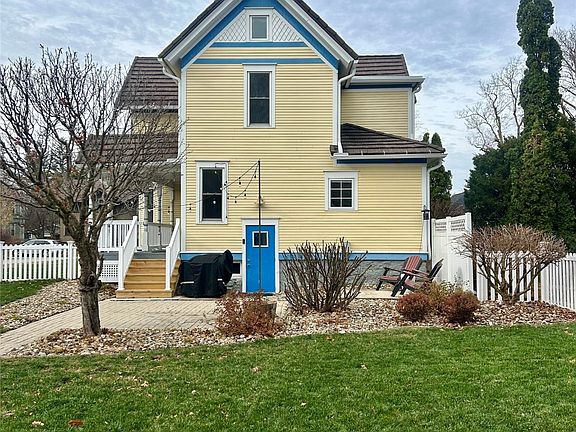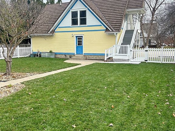 This stunning decorative three-story home with 2,879 of square feet is in Grinnell's Historic District and just one block from Merrill Park and Grinnell College. The first floor includes a foyer, vestibule, parlor, living room, formal dining space, and spacious kitchen. The kitchen was remodeled this year and offers generous natural light and ample cabinet and counter space. Be wowed by modern cabinetry, stainless steel appliances, luxury vinyl tile flooring, and a charming built-in coffee bar. Off the kitchen is a half-bathroom with laundry and a second staircase providing convenient access to the second floor. The home blends traditional design with elements of modernity - hardwood floors, original woodwork, pocket doors, grand staircase, updated light fixtures, and newer interior paint. The second floor has 4 bedrooms and a renovated bathroom with double sinks. The climate-controlled attic on the 3rd floor is finished and will not disappoint. Head out the back porch to an outdoor patio – a perfect space for relaxing and entertaining. The backyard is fenced - new in 2021. What sets this turn of the century home apart is the guesthouse over the detached 3-car garage (new separate heat/AC unit in 2022). The guesthouse includes a contemporary living space and bathroom, so could be easily used for a home office/business, exercise room, or rental. Incredible property with cement board siding, steel roof, tons of storage, and new gutters. Come see this amazing home!