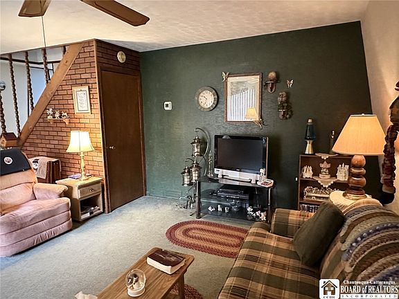 Unique A-Frame home set on a full acre in the countryside. This home features a country kitchen with a breakfast bar and recessed lighting. The kitchen opens into the dining room to make hosting a breeze. The warm and inviting living room has a ceiling fan and a sliding glass door that lets in lots of natural light. The three bedrooms are on the second floor. The master bedroom is spacious, with closet space and a private balcony. There are two full bathrooms. The laundry is on the first floor. The full basement has an exterior walkout, and there is some built-in storage, as well as plenty of space to set up a workshop or a hobby area. The home is equipped with central air. Outside is a covered deck to enjoy temperate evenings and a shed to hold lawn care equipment. Delayed Showings until Saturday, November 2, 2024, at 10:00 AM.