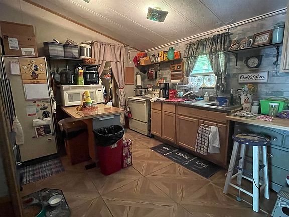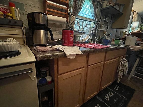 3 Bed 2 Bath DWMH in Westwood with 2-car detached garage plus storage building. Mostly level 3/4 acre (5 lots) at the end of a cul de sac in a very private, country setting, yet convenient to all the amenities! There's a creek on the property and flood insurance is required, but owner pays just $435 every 6 months for home & flood insurance. Charming kitchen with farmhouse style featuring repurposed dressers for cabinetry with butcher block countertops. Appliances include electric range, microwave, side-by-side refrigerator, and newer washer & dryer. Split bedroom floorplan with 2 bedroom and shared bath on one side of the open floorplan, and the main bedroom with private bath and walk-in closet on the other side. HUGE detached garage with tons of space for your vehicles and workshop. Fenced yard keeps pets and kiddos safe. On the other side of the garage is another spacious level lot with privacy fencing where you can plant a huge garden, set up a pool, or create an ideal outdoor play space. Updated plumbing and electric, along with cosmetic updates inside. Older central heat/air needs new AC condenser (currently using window AC). If you like country living plus the convenience of town, you won't want to miss out on this bargain price ponderosa!