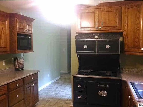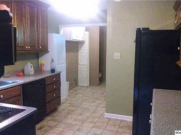 has toilet in laundry, lots of cabinets, pantry w/pull out drawers. Very large living room, large deck.