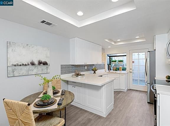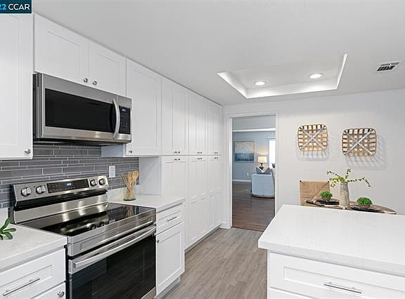 Location, location! Close to downtown, shopping, restaurants, great schools, BART, freeway, trails, parks, hospital, and so much more. 3 bedrooms, 3 baths, 2-car garage, 1 bedroom & 1 full bath on the first floor, with 2 master suites on the second floor. This home has been extensively updated, is beautifully presented and ready for occupancy. The Kitchen is any chef's delight w/ updated quartz countertops, white cabinetry, SS appliances, updated flooring and lighting. The huge family room is ideal for entertaining. An abundance of storage includes a walk-in closet under the stairs and considerable closet space throughout. This spacious Townhouse has no rear neighbors and backs to the open space. A highly sought-after neighborhood features miles of trails and a community pool plus a very desirable location on a cul-de-sac. Landlord pays for HOA fee, complex offers pool and greenbelt.