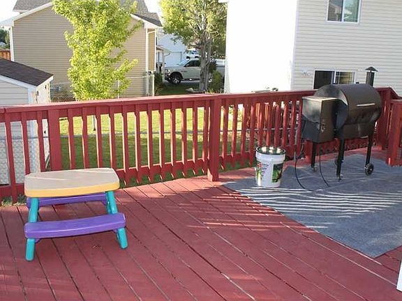 Nice home in a quiet heights location. Near the walking path & park. Features new siding, roof, gutters. Huge wrap around deck in back w/storage underneath. Underground sprinklers & all fenced. Open kitchen/dining w/island. Small HOA includes snow removal