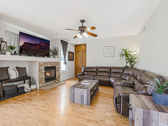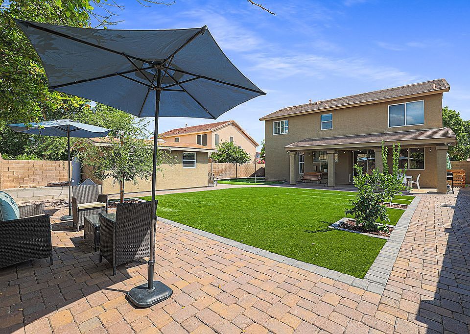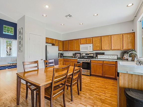 Awe-inspiring property close to everything and NO HOA! Spacious 3 car garage, easy-care landscape. Interior boasts soaring ceilings, spacious living/dining room, cool palette offset by clean white wainscoting, handsome wood floors, beautiful light fixtures, abundant natural light, and a comfy family room. The modern kitchen offers ample cabinets, shimmering SS appliances, and a pantry. A perfectly appointed family room is adjacent to the kitchen with a cozy stone fireplace. Plush carpets throughout the second floor. The primary bedroom vaulted ceiling, accent wall, a walk-in closet, a private balcony, and a lavish ensuite with dual vanity and an oversized shower. A convenient den is an excellent space for an office. The resort-like backyard is a true dream comprised of a relaxing covered patio, extended paved patio, lush lawn, putting green, and multiple seating areas to sunbathe. An enormous bonus is a separate guesthouse with grey wood-like flooring, a kitchenette with a custom backsplash, and a full bathroom with marble tiles. You'll be blown away! Easy access to several community parks, lots of shopping, restaurants, entertainment.