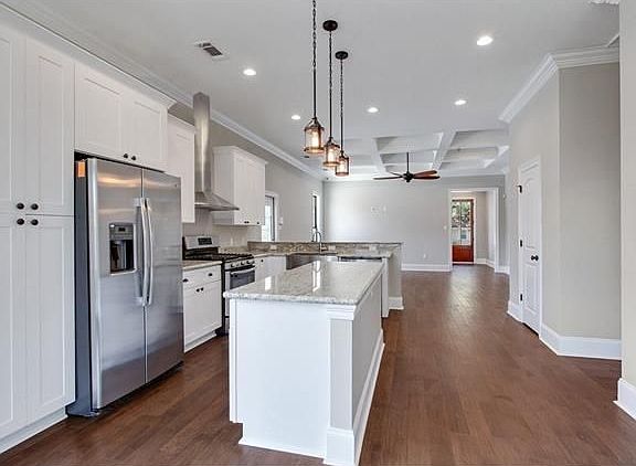 UC builder changed plans and upgrades. All brick home in Metairie, with 3 bedrooms/baths. 11ft ceilings in the main area and 9ft bedrooms. 7" crown throughout/shaker cabinets/granite/SS/bronze hardware/subway tiles in all bathrooms/double vanities/designer lighting/custom closets with wood shelving. Rear yard access. New construction brings low insurance cost and a 1-3-5 State Home Warranty. Starting at $369,000
