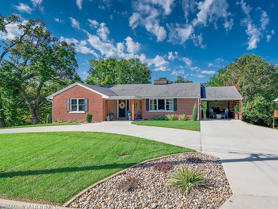 Check this out! Immaculate property in Jefferson City. Pull into a beautifully landscaped front yard and circle driveway. The carport is a perfect entertainment spot and of course parking. New epoxy floors on the carport and covered front porch. Walk into a large family room with hardwood floors and a nice built in corner cabinet. Nice kitchen with newer appliances and lots of natural light. Kitchen opens to the living room with a fireplace. Master bedroom offers double closets and a half bath. Nicely remodeled main level full bath as well. Basement offers a family room with newer flooring. Third bedroom is downstairs and can act as a second master suite as it has a full bath off of it. Tons of storage downstairs with another storage room under the carport. Private and fenced backyard. Lots to offer at this beautiful property, call to see today!