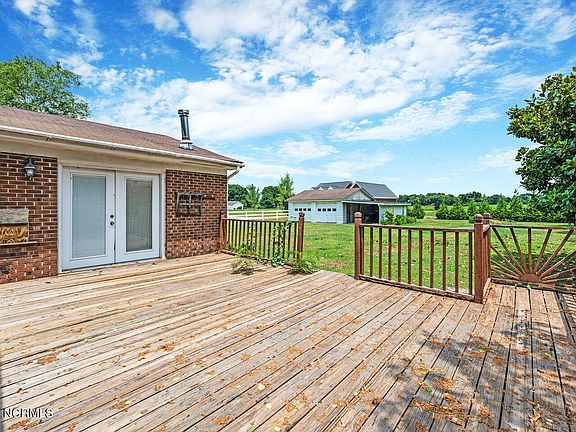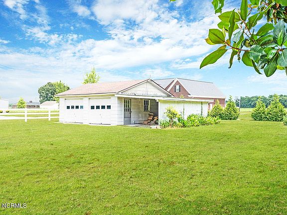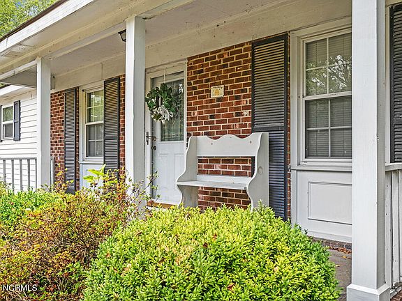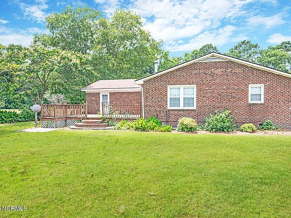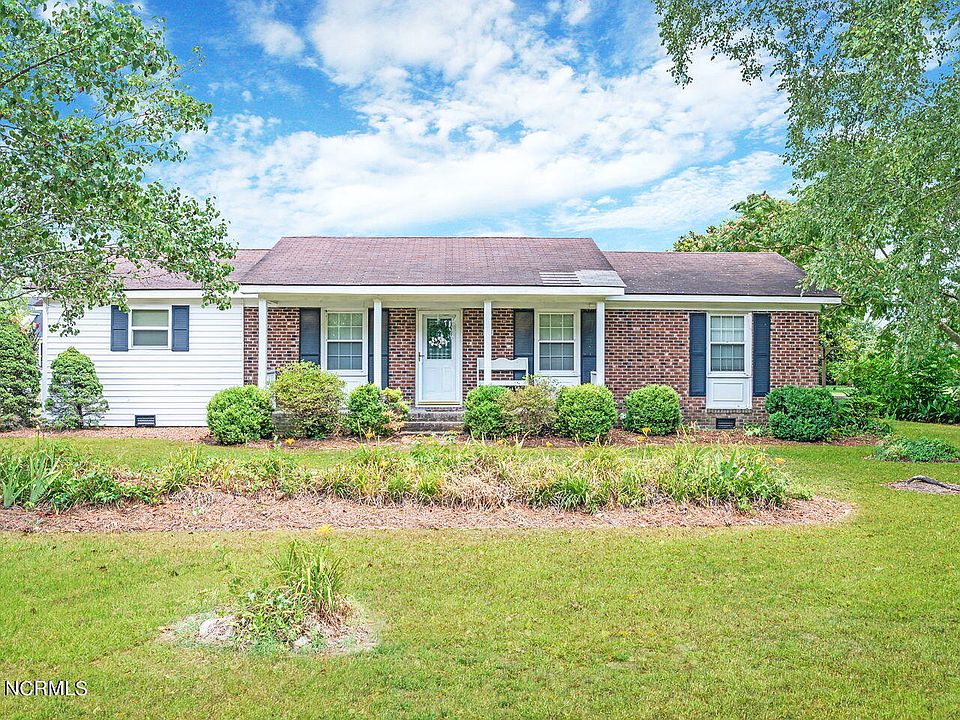 Escape to tranquility in this charming brick ranch-style home where you can relish the serene countryside while being just a short drive away from the vibrant Eastern North Carolina towns. Nestled on a spacious .57-acre lot, this delightful home offers a perfect blend of comfort and tranquility. The front porch provides a welcoming appeal as you enter. The kitchen features a breakfast bar and abundant cabinet space. The large primary bedroom boasts a private bath with a dual vanity, providing space for everyone. Outside, enjoy relaxing or entertaining on the back deck. The property also includes a large detached garage/workshop with an attached covered shelter, perfect for projects or extra storage.