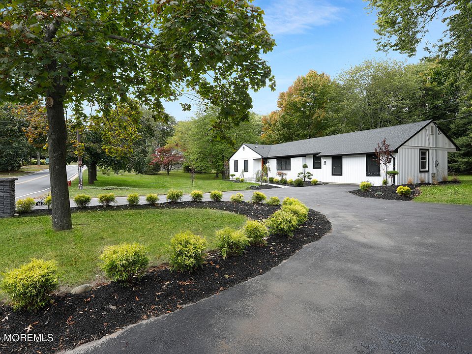 This MODERN FARMHOUSE STYLE RANCH has been completely renovated & is perched beautifully on a one acre property. Guests will be impressed as they pull into the circular driveway of this stylish home...graced with stunning finishes throughout including knotty pine hardwood floors, detailed woodwork, barn doors & black frame windows. TWO MASTER ENSUITES is ideal as a mother/daughter or guests. The Primary suite is situated privately and is expansive. The NEW White KITCHEN is sleek with stainless steel appliances. Rooms are sun filled and overlook the private wooded grounds, with plenty of room for a pool! The full basement can be easily finished for additional living space. Nothing to do but unpack and enjoy the Jersey Shore lifestyle, minutes to beaches & downtown Manasquan.