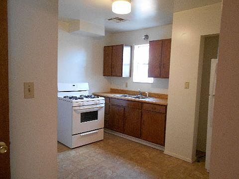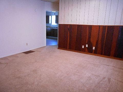 Kitchen includes stove and refrigerator. Living room. Utility room with washer/dryer connections. Large shared back yard. PET ON OWNER APPROVAL