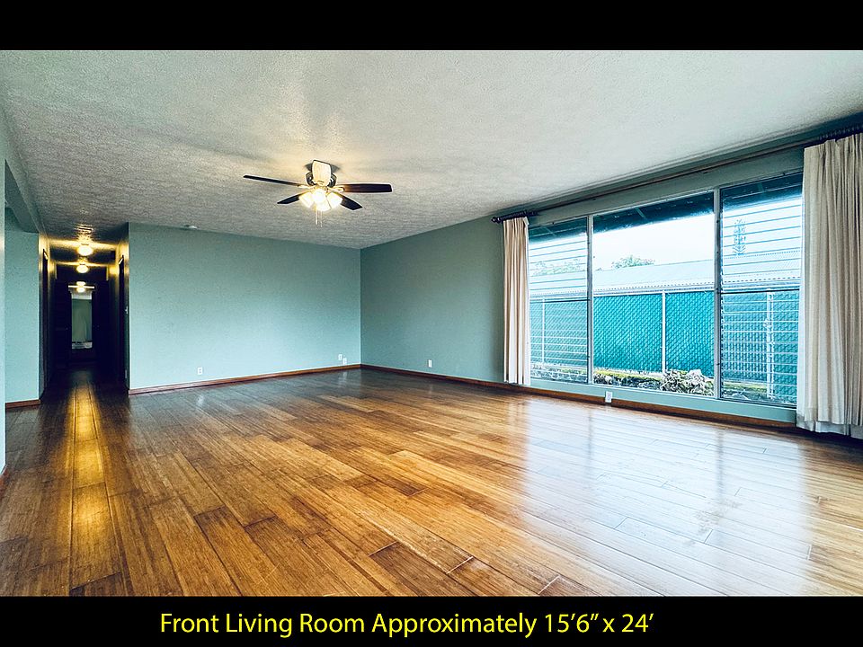 Looking for a beautiful, large home in a convenient Hilo location? This home might be just for you! There are two large living rooms (approximately 372 SqFt and 481 SqFt) separated by the kitchen/dining area in the front. Use one for a basketball court and the other one for a second basketball court! Or maybe something more conventional- there is so much space here for your furniture you may have to go on a shopping spree to fill it up!