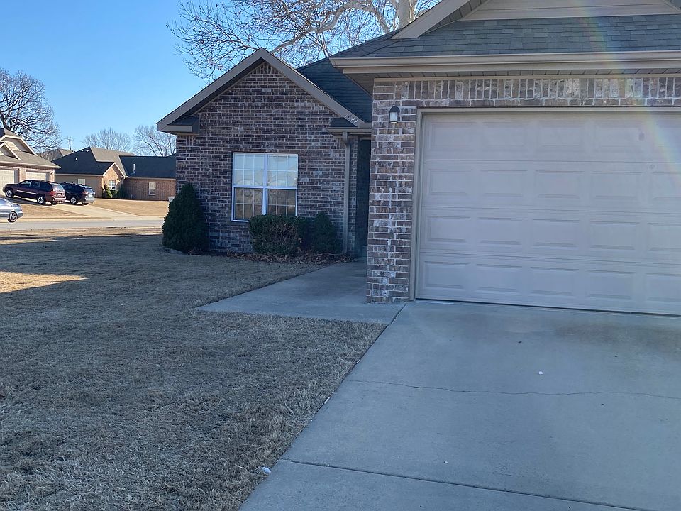 Great location - property is 9 minutes from Walmart Home Office. This spacious two-bedroom, two bathroom duplex sits on a corner lot with a great view and features a one car garage. The kitchen comes with Frigidaire appliances that include refrigerator, range, microwave and dishwasher. Kitchen also has a nice size pantry and granite countertops. The master bedroom has a walk-in closet and a full-size bathroom. The dedicated laundry space has washer and dryer connections. Zero fenced in yard allows for lots of outdoor space. Management handles all your lawn maintenance. This duplex in located near restaurants, shopping and in the Bentonville School District. This beautiful property is available for a February 1st move-in.