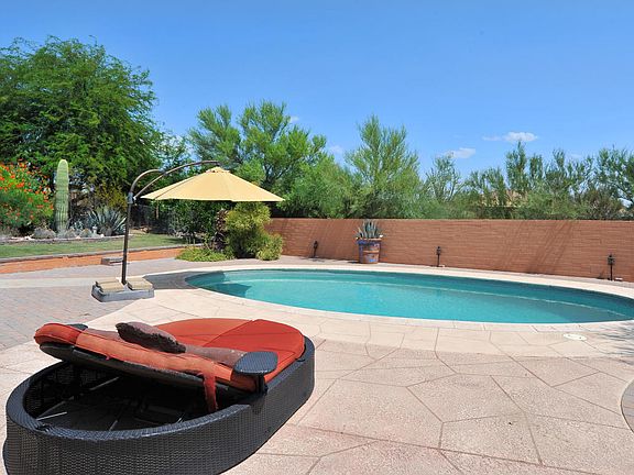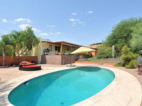 This charming Sonoran desert hacienda has it all! Amenities include,burnt adobe construction,saguaro rib roof on the lodge pole porch, Saltillo & Talavera tile, beehive fireplace, abundant cactus, mesquite, wildlife, shady back porch, sparkling pool, workshop/garage. View of city lights plus Catalina, Rincon & Tucson mountain ranges,all on 0.66 acre of southwestern serenity.