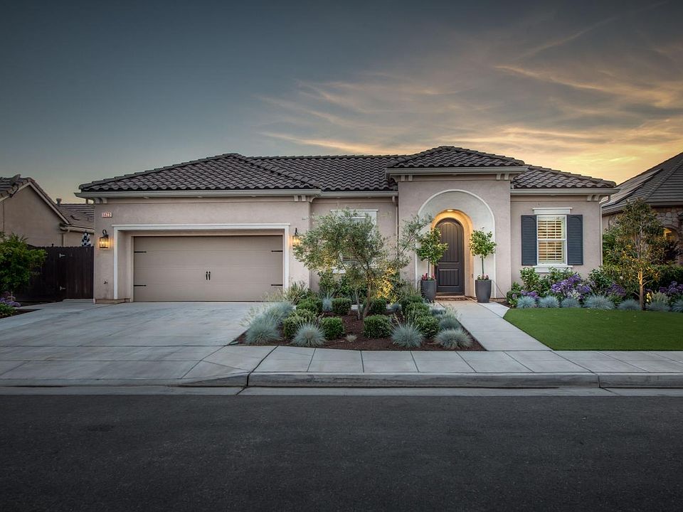 This gorgeous 4 bedroom, 2 bathroom house is located in a family friendly neighborhood of Clovis. It is move in ready and an entertainer's dream. This house has been fully upgraded in every place imaginable with hand textured walls, high end bathroom fixtures, lighting, and quartz countertops throughout. The kitchen has GE Caf appliances with a commercial grade GE cooktop and range hood. The family room is spacious and surrounded by beautiful views of the courtyard and luscious backyard. The master bedroom brings in all the natural light with surrounding windows and a beautiful spa like master bathroom containing marble mosaic tile shower floors and a free-standing tub. In the middle of the house there is a courtyard with a natural gas fireplace covered in natural stone that makes a nice lounge area for morning coffee or an afternoon cocktail. The backyard is designed for entertainment with a large pool containing a water feature and large lounge area. The yard has custom brass uplighting on all trees and has artificial grass for easy maintenance. You will not want to miss this house; it is truly one of a kind. The kitchen refrigerator, wine refrigerator and garage refrigerator are all included in the sale of the home along with all potted plants in the yard. Net Zero house with leased solar. fourth bedroom does not have a closet.
